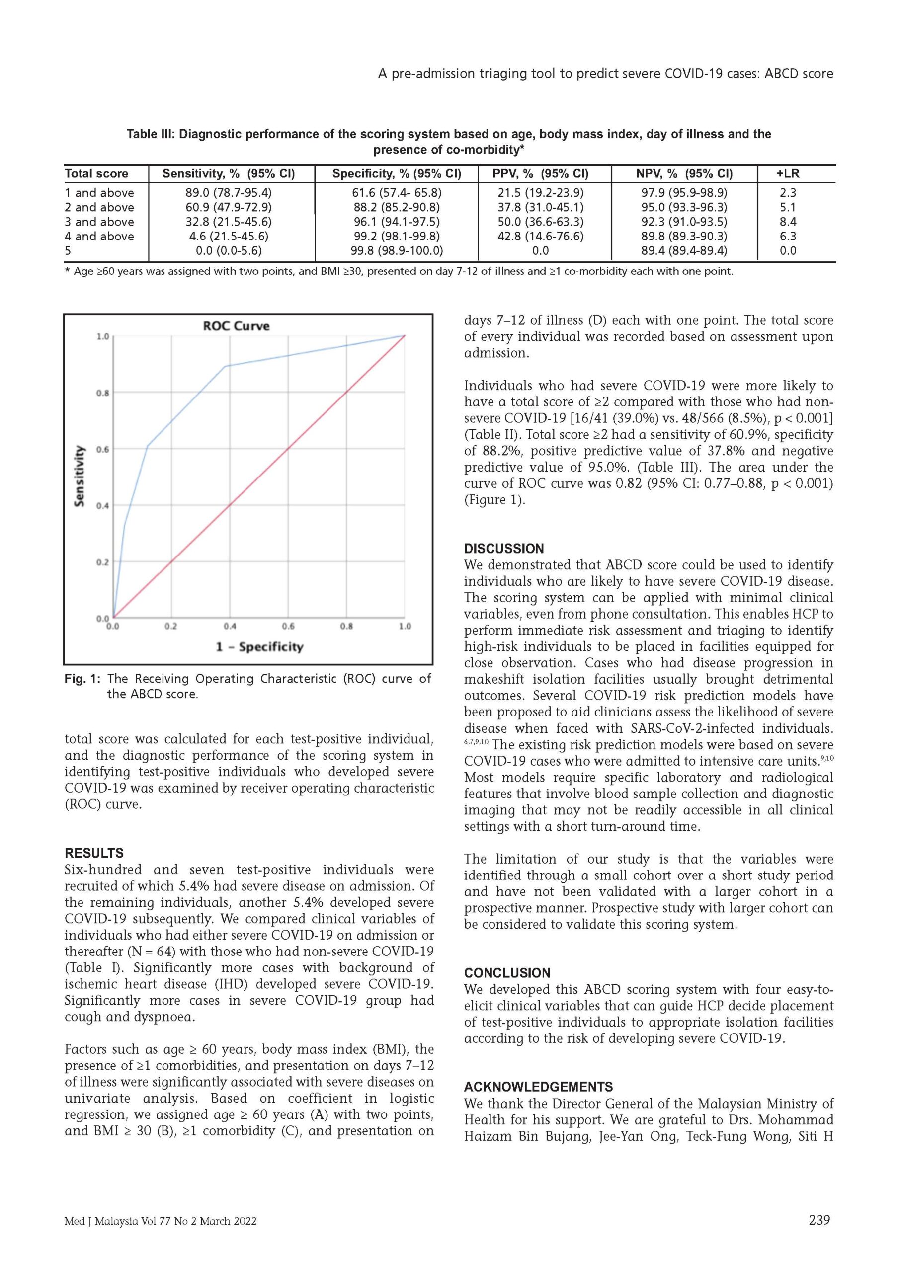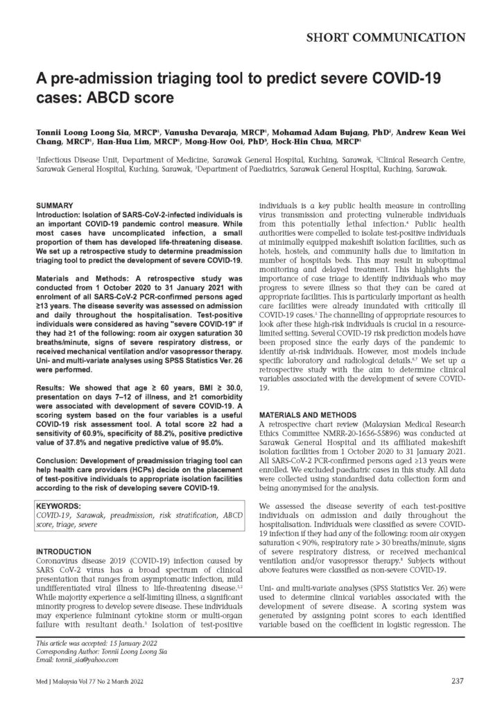A pre-admission triaging tool to predict severe COVID-19 cases: ABCD score