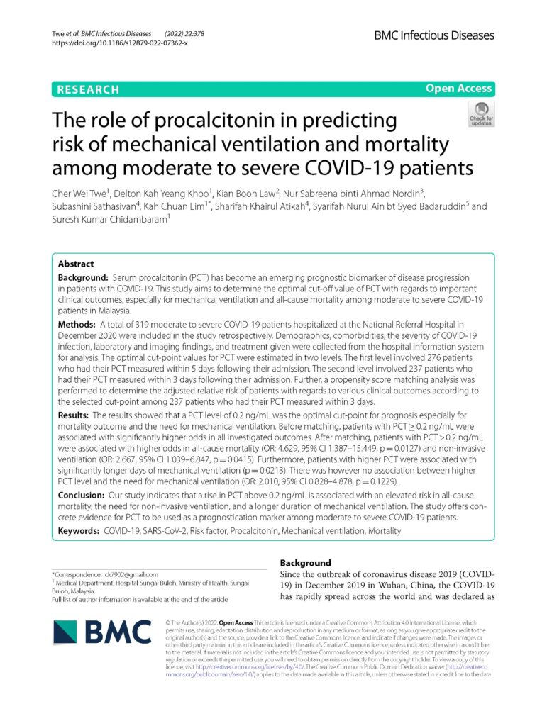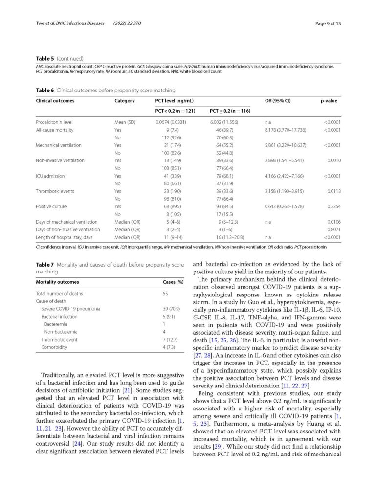 The role of procalcitonin in predicting risk of mechanical ventilation and mortality among moderate to severe COVID‑19 patients